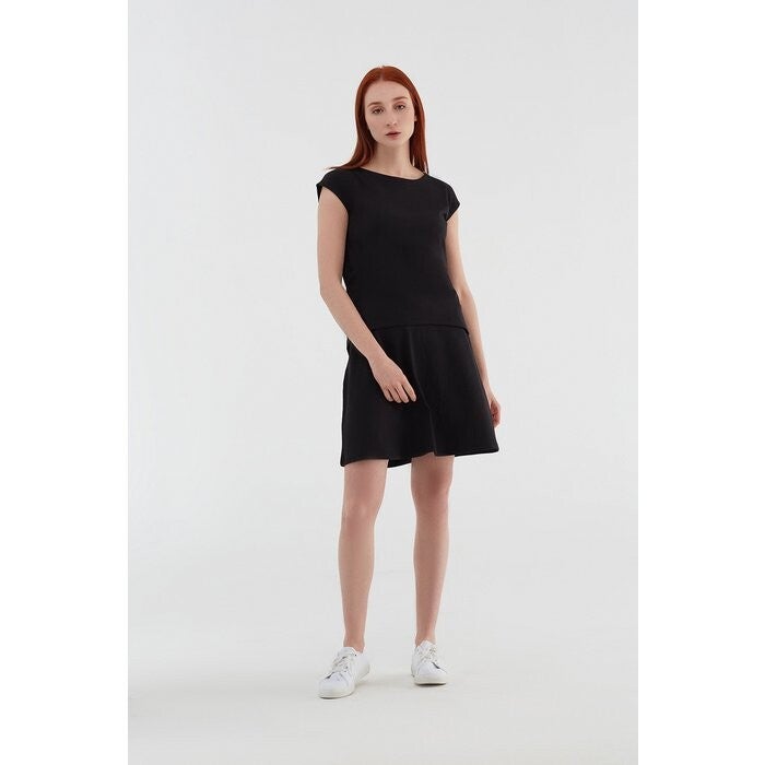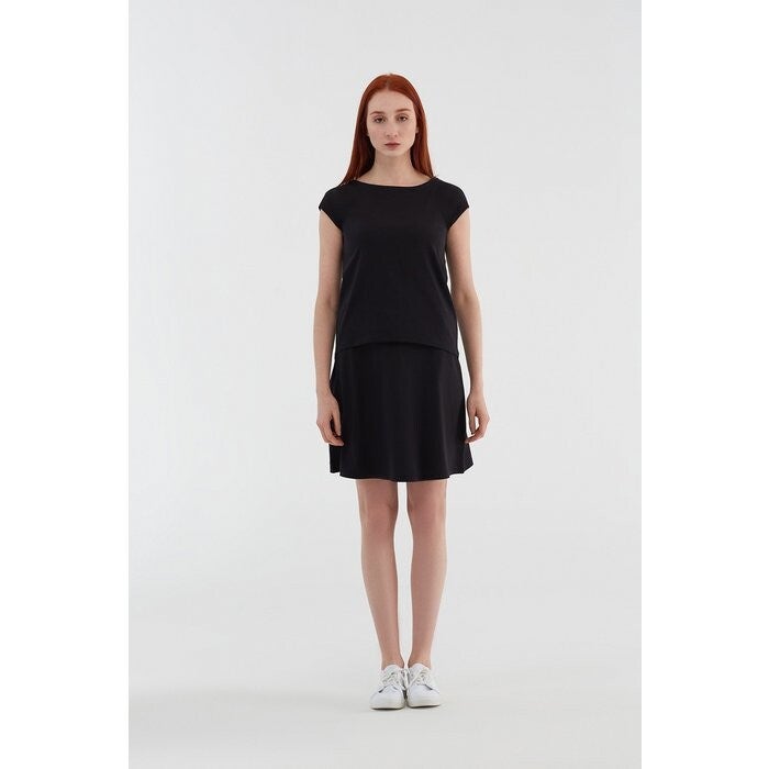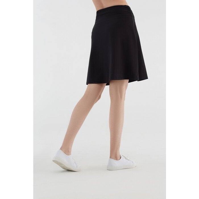 Zwarte rok met een brede comfortband. De A-lijn pasvorm zorgt voor een comfortabele pasvorm. Gemaakt van zachte katoenen jersey, 95% biologisch katoen (kbA) en 5% elastaan, met trekkoord voor een perfecte pasvorm. kleding