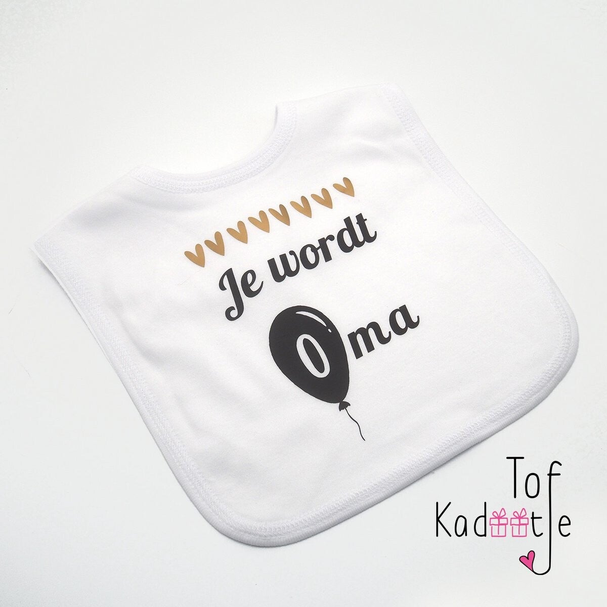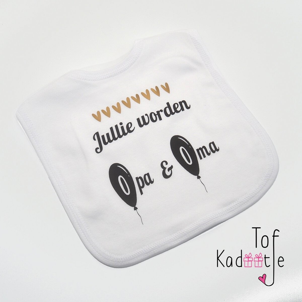 Slabbetje met hartjes en tekst je wordt Opa/Oma/Jullie worden opa & oma.