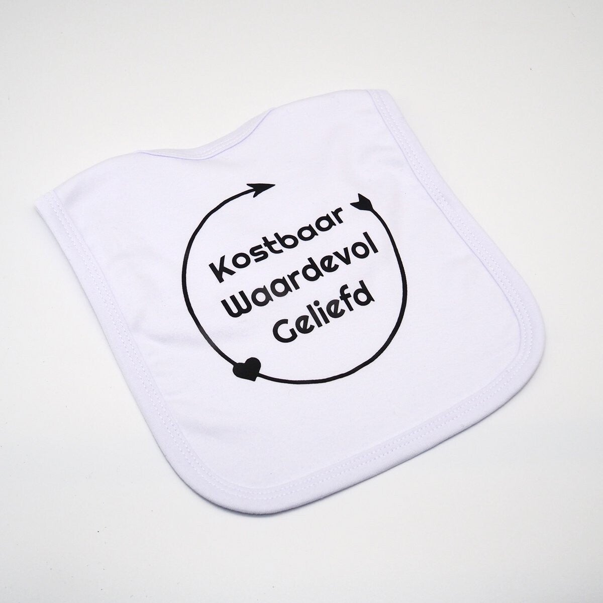 Leuk slabbetje met de tekst kostbaar, waardevol, geliefd.