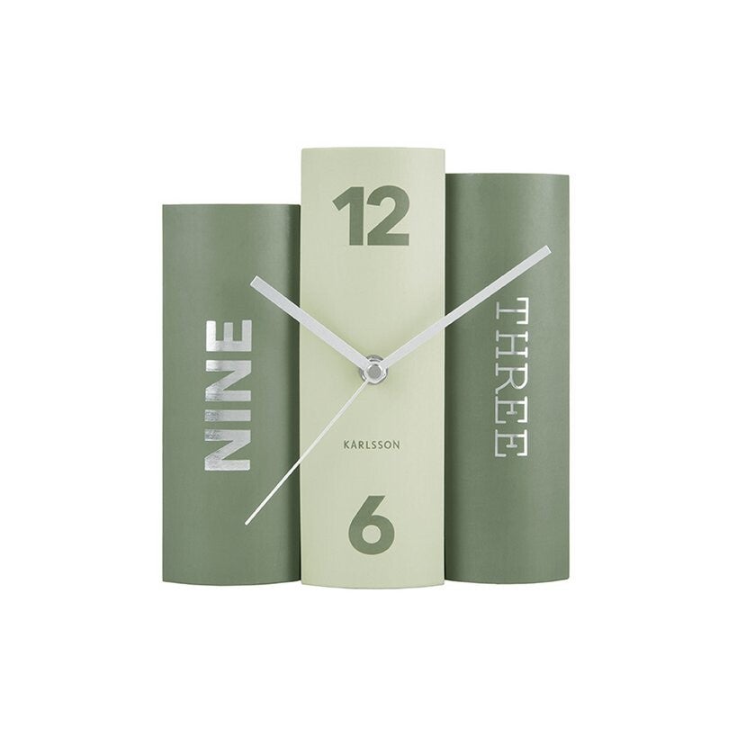 Hallo boekenwurmen! Deze Karlsson klok is nauwelijks te onderscheiden van een set boeken. Het unieke ontwerp van de tafelklok Book uit de Karlsson collectie heeft de vorm van 3 boeken samen. Deze moderne speelse tafelklok, ontworpen door Sjoerd van Heumen voor Karlsson, is verkrijgbaar in 3 verschillende kleuren;groen,grijs en roze. Een grappige en speelse eyecatcher op je bureau of in de boekenkast.(cadeau,geschenk,kadootje)