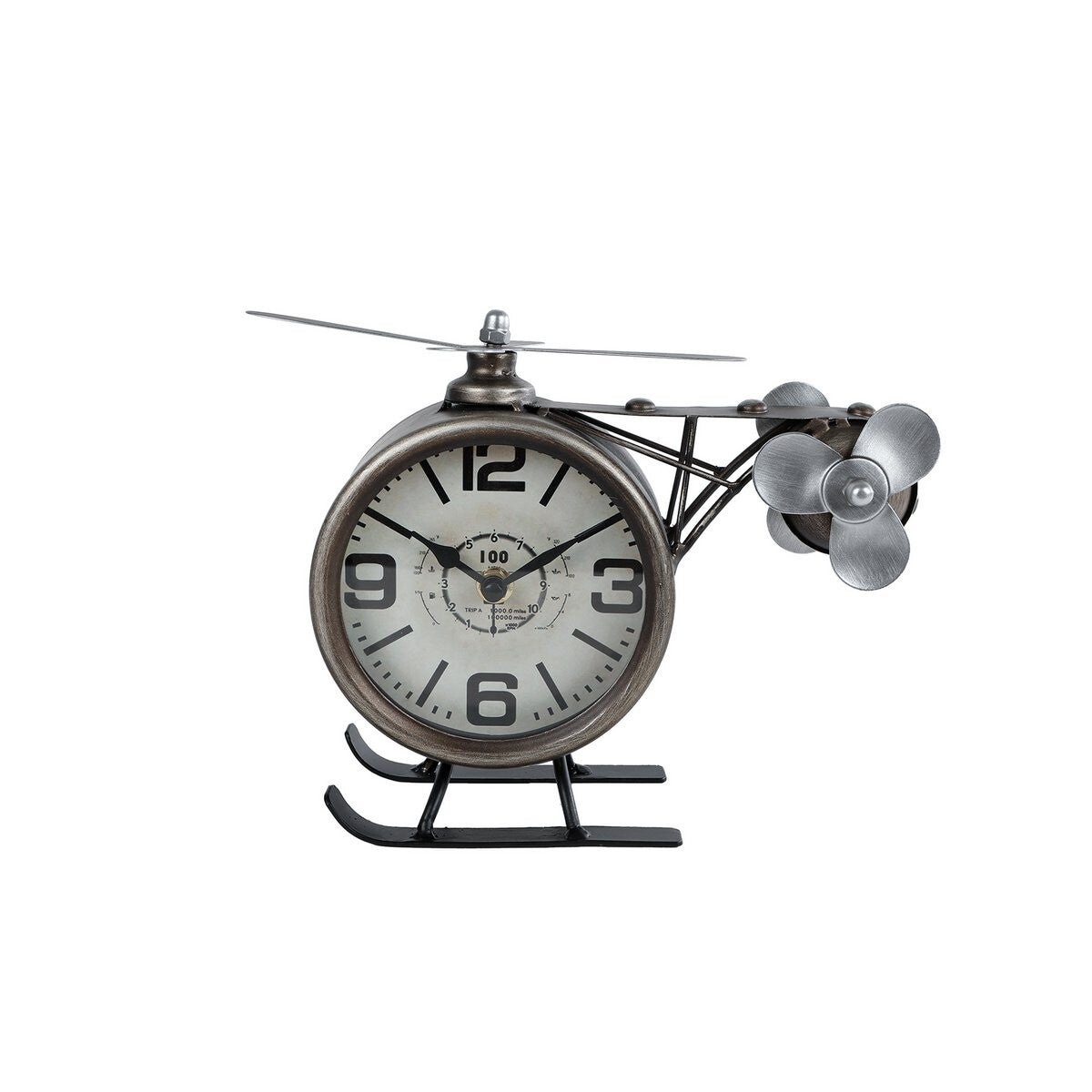 Dit is een elegante klok in de vorm van een helikopter. Het frame is gemaakt van messing metaal, wat een klassieke en tijdloze uitstraling geeft. De wijzerplaat is groot en duidelijk leesbaar, met opvallende cijfers. Het propeller-achtige accent geeft het een vintage-geïnspireerd ontwerp. Deze klok wordt aangedreven door een 1xAA-batterij, waardoor hij eenvoudig te gebruiken is. Het is een prachtig decoratief object dat zowel praktisch als stijlvol is.(cadeau,geschenk,kadootje)