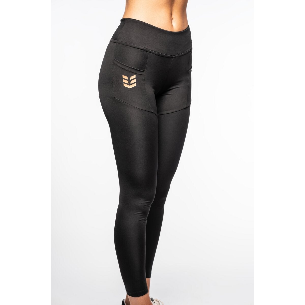 Black Aphrodite gerecycled" legging in uw assortiment, een voorbeeld van zeer functioneel design gecombineerd met ecologische verantwoordelijkheid. Dit product is gemaakt van gerecycled polyester en vertegenwoordigt duurzaamheid in fitnesskleding. Het subtiele logo en de twee praktische zakken maken het ontwerp compleet en bieden een echte meerwaarde. kleding