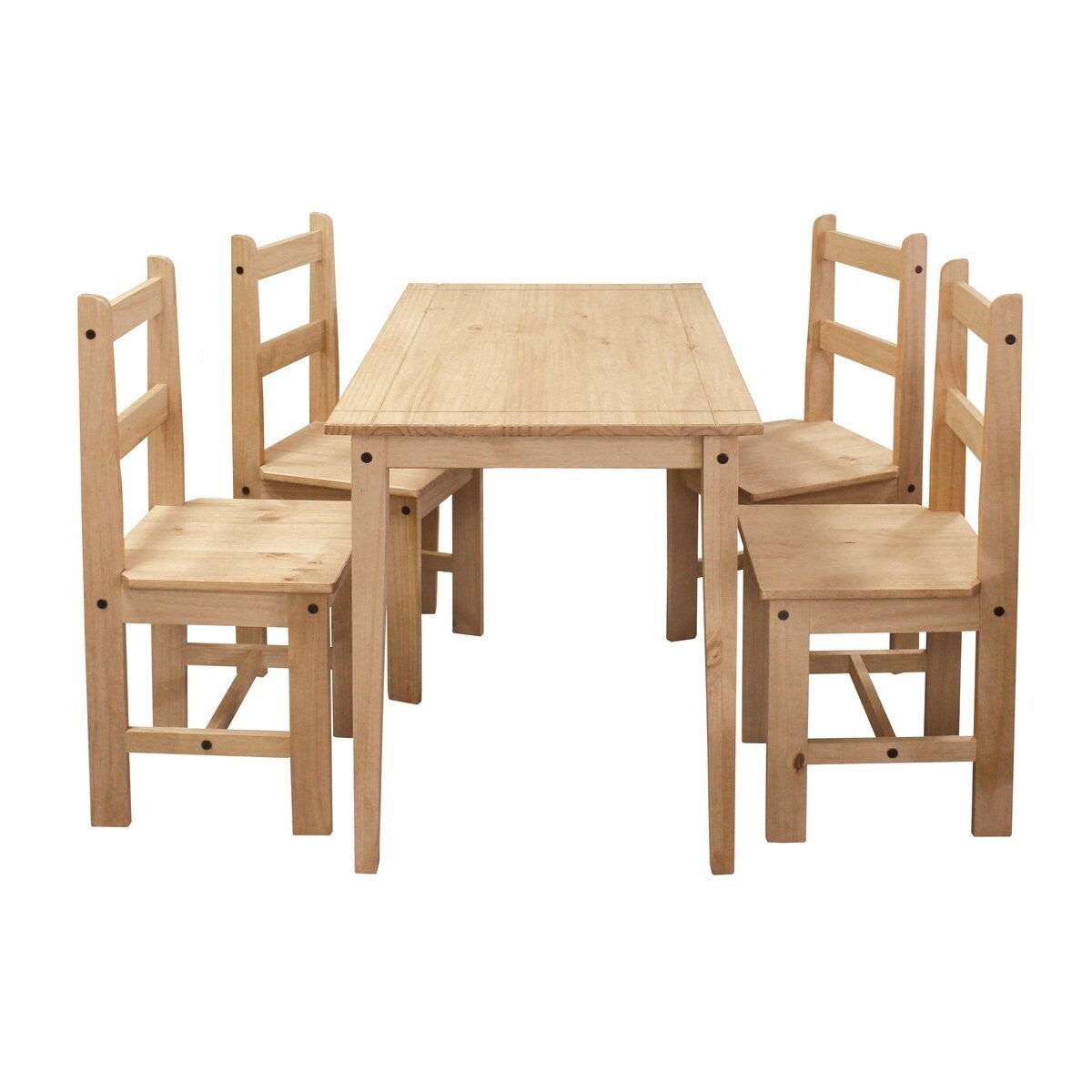 Voeg een vleugje natuurlijke elegantie toe aan uw eethoek met onze massief grenen eettafelset. Deze eetset, bestaande uit een tafel en vier stoelen, is niet alleen functioneel, maar ook een echt hoogtepunt voor je huis. De eettafel, gemaakt van hoogwaardig grenenhout, biedt voldoende ruimte voor gezellige maaltijden met familie en vrienden. Het natuurlijke, gewaxte oppervlak benadrukt de warme nerf van het hout en geeft de tafel een rustieke schoonheid. De vier bijpassende stoelen bieden niet alleen een comfortabele zit, maar voegen ook stijlvolle accenten toe aan je eetkamer. Ze zijn gemaakt van hetzelfde hoogwaardige grenenhout als de tafel en passen perfect bij de natuurlijke esthetiek. Deze massief grenen eettafelset is niet alleen een functioneel meubelstuk, maar ook een echt statement van kwaliteit en stijl. Hij past harmonieus in verschillende inrichtingsstijlen en wordt zeker het middelpunt van uw eethoek. meubel meubels eettafel stoel stoelen Afmetingen tafel: 108x65x76 cm, afmeting stoel 39x42x93 cm.