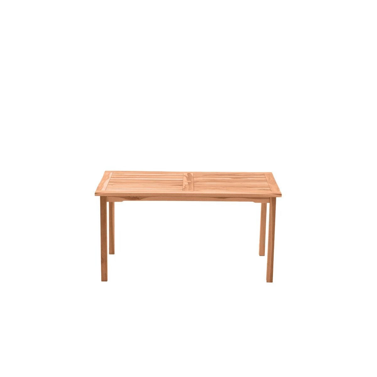 Deze teakhouten tafel in een warme natuurlijke tint is een echte klassieker voor tuin en terras. De robuuste eettafel is bestand tegen weer en wind en is daardoor een duurzame metgezel voor buiten. Houten stutten in verschillende kleurgradaties maken het tafelblad tot een interessante blikvanger. Het klassieke vierpootsframe biedt comfortabele beenruimte. Bij het volgende barbecuefeest biedt de tafel van 150x90 cm plaats aan maximaal zes personen. Uiteraard kun je dit meubel ook binnenshuis opstellen. meubel meubels bank stoel stoelen tuin