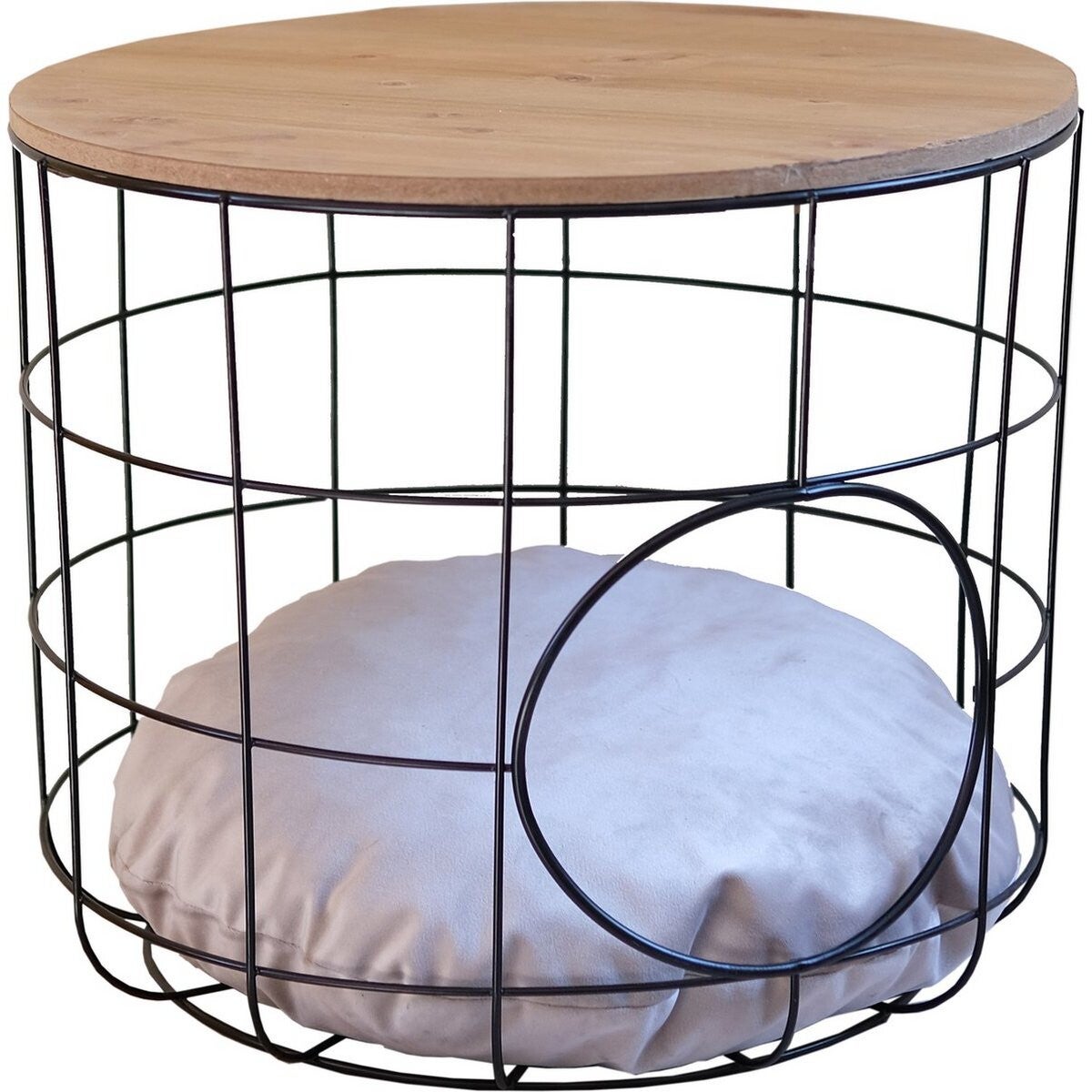 Decoratief dierenhuis en bijzettafel - ø 41 cm van Naturn Living - Kattenmand - Draadmand - Bijzettafel - Huisdieren mand - Mat zwart