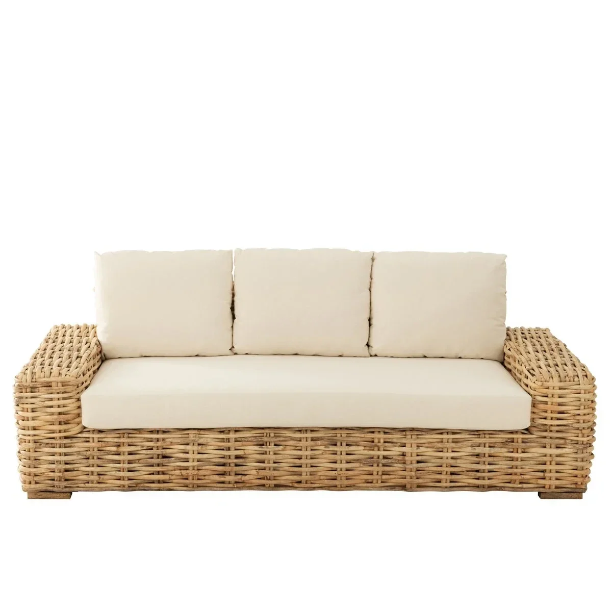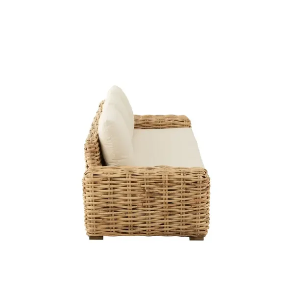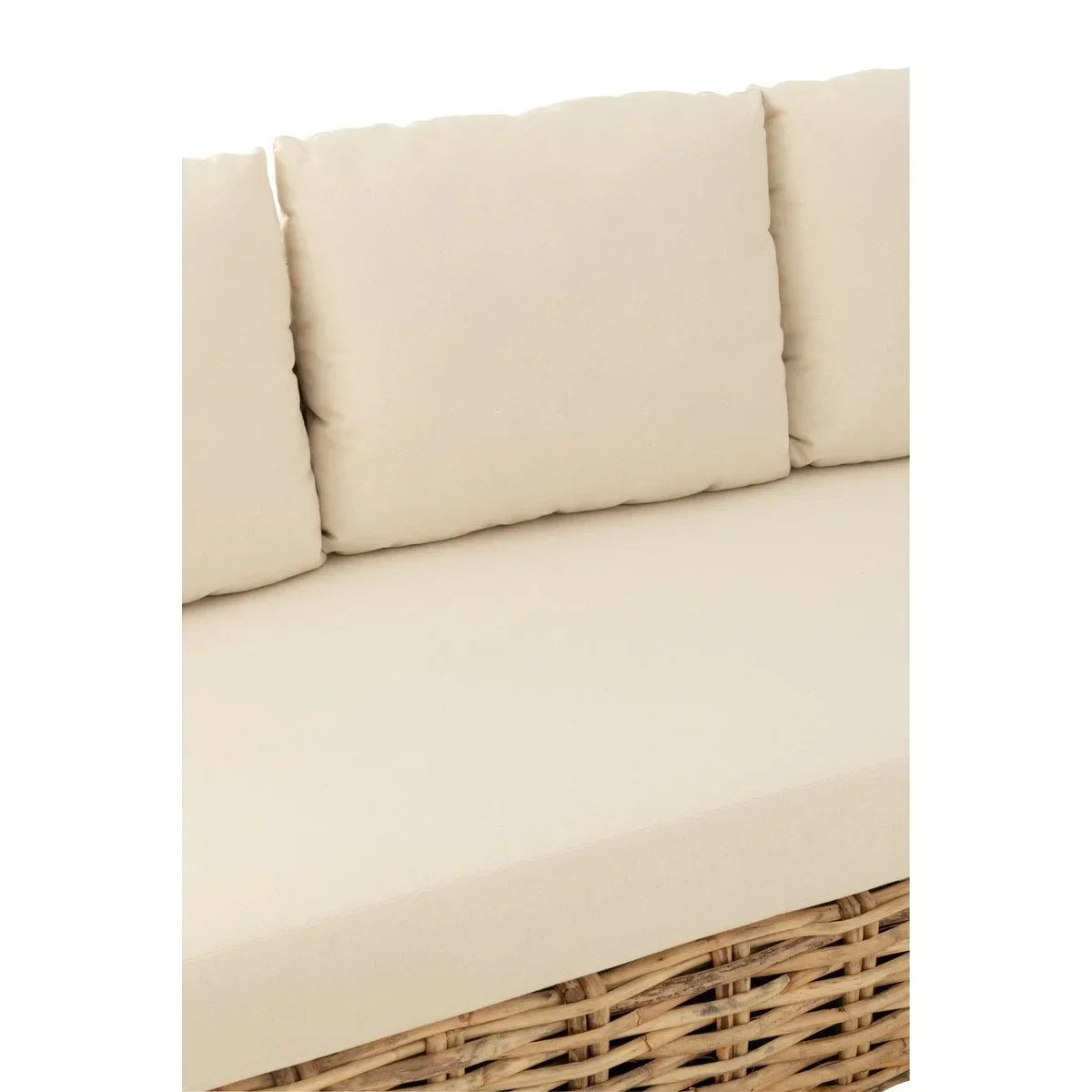 J-Line Sofa+Kussen 3 Personen Rotan/Textiel Naturel/Wit