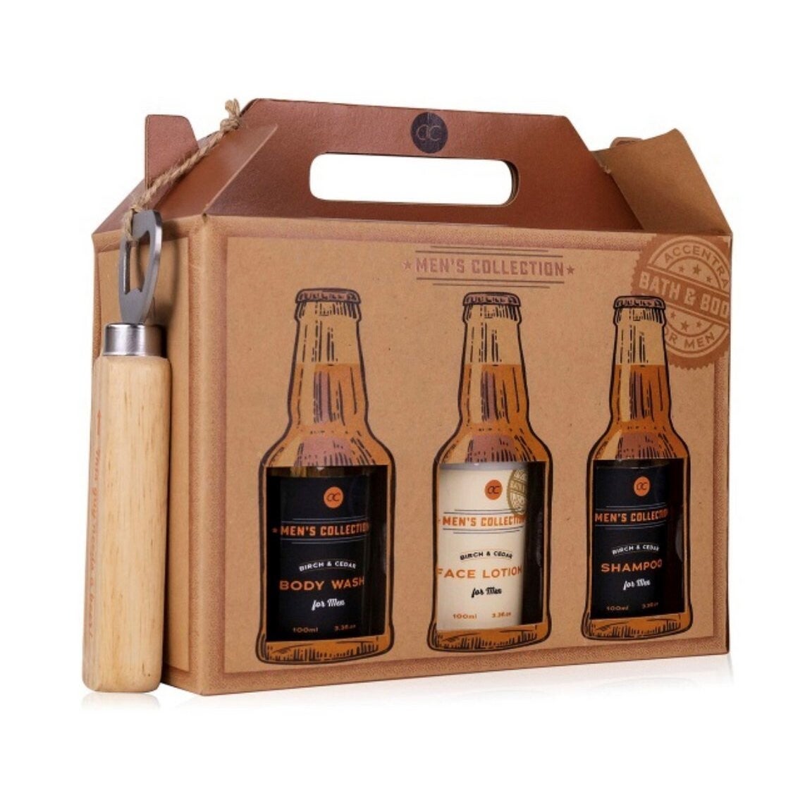 Dit is een praktische set badproducten voor mannen. De zes flesjes van 100 ml bieden een complete verzorging voor de huid. De ambachtelijke uitstraling en het houten draagsysteem geven het geheel een robuuste en natuurlijke uitstraling. Deze set is ideaal voor de moderne man die op zoek is naar een eenvoudige maar effectieve manier om zijn lichaam te verzorgen.(cadeau,geschenk,kadootje verzorging geur zeep )