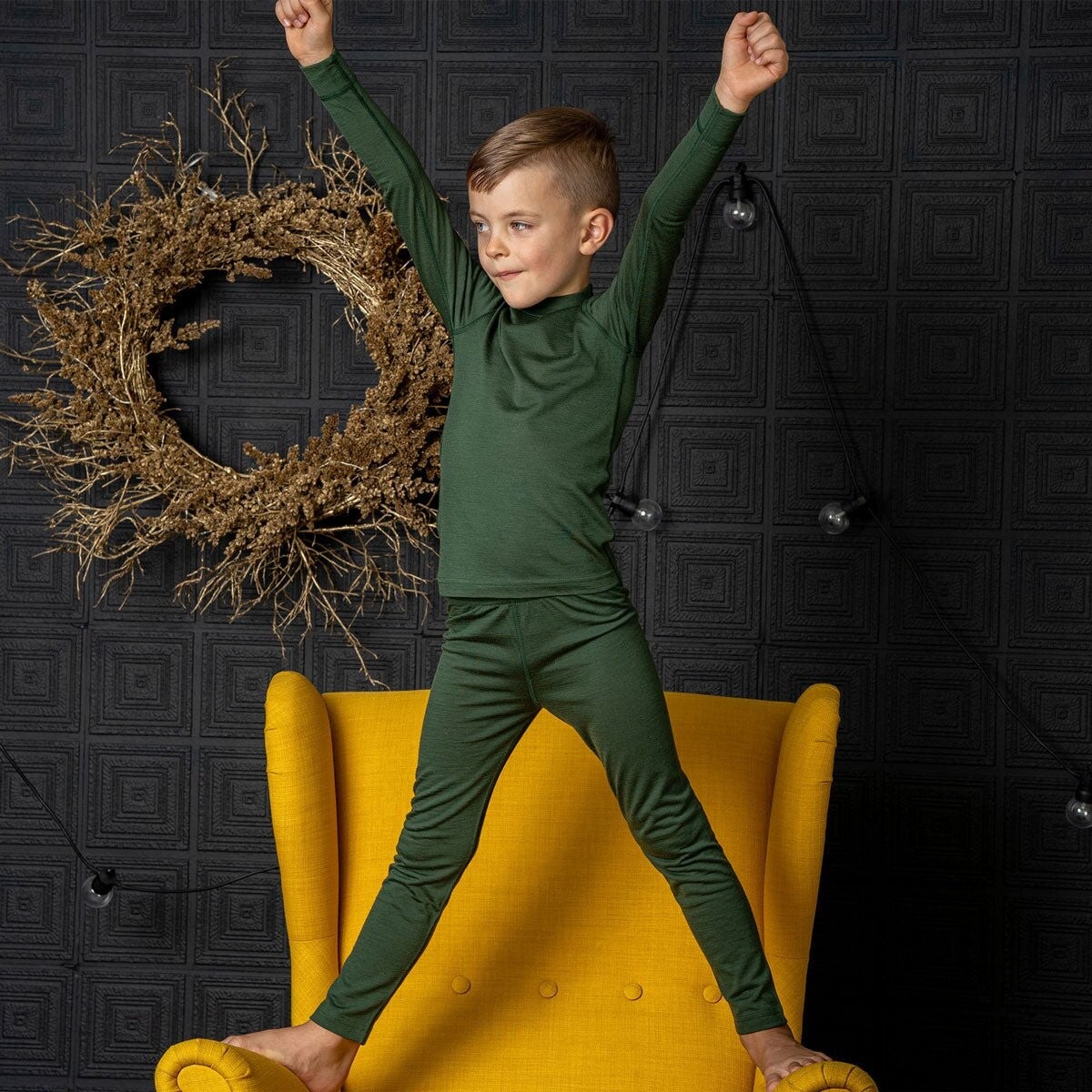 Kids' 160 lange mouwen en broekje, 2-delig donkergroen