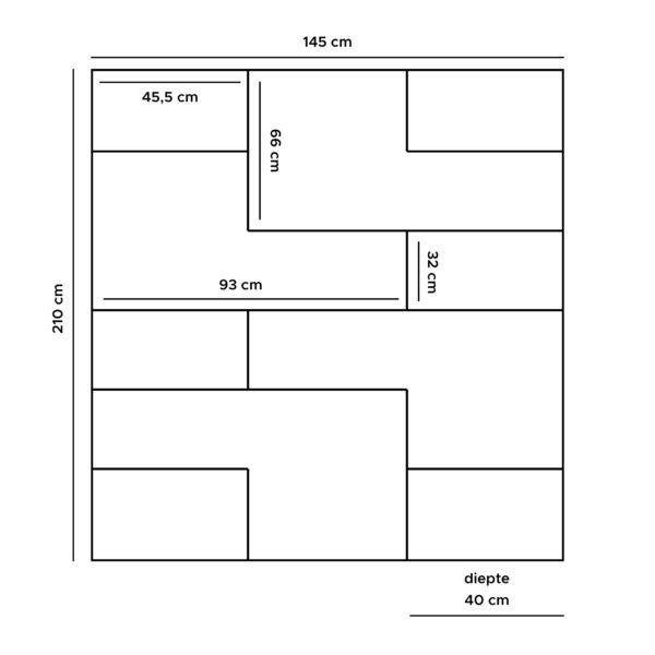 Vakkenkast Huub Zwart Mangohout 210 x 145 cm – Roomdivider