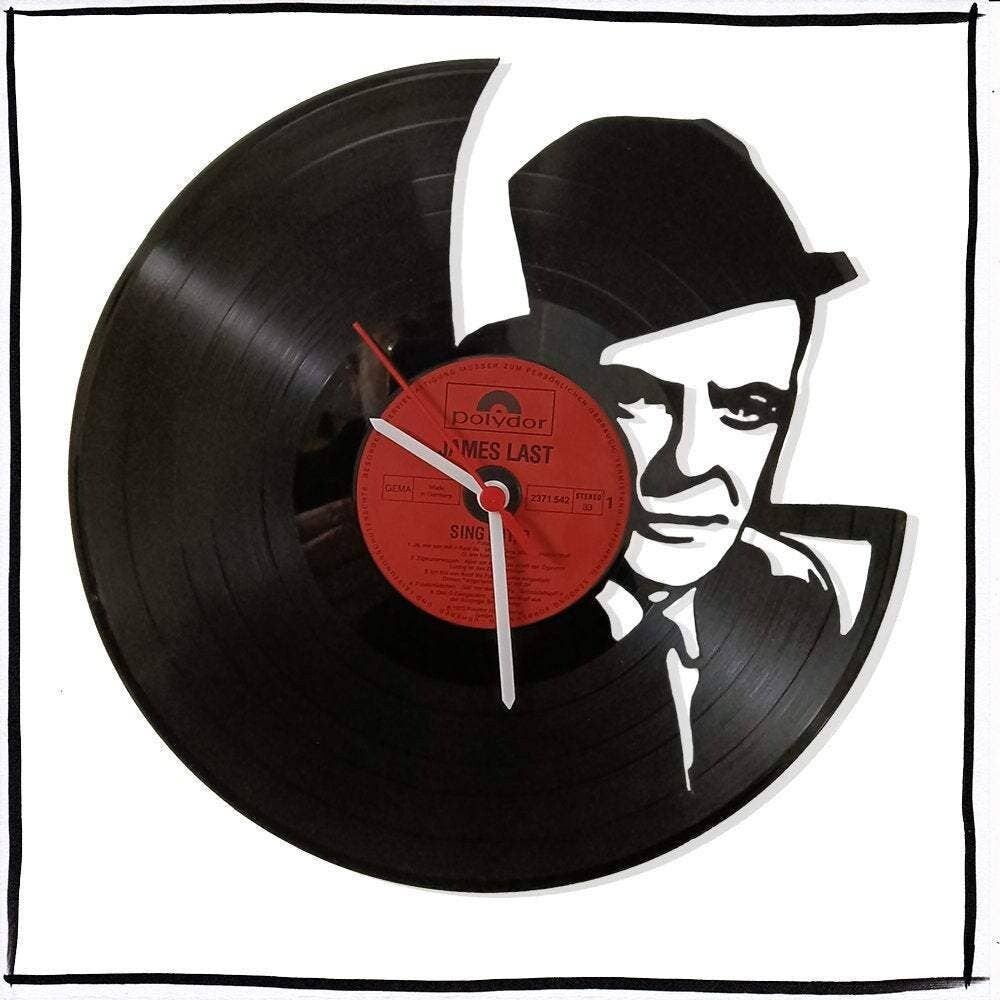 Naam Product: Wandklok gemaakt van vinyl record klok met Frank Sinatra motief upcycling design klok wanddecoratie vintage klok wanddecoratie retro klok